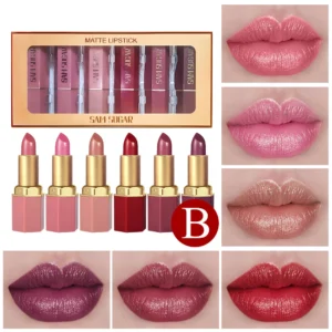 Be the first to review “6 Colors Gold Bar Tube Lipstick Matte Texture Pearlescent Glitter Velvet Lipstick Valentine’s Day Gift 6PCS” Cancel reply