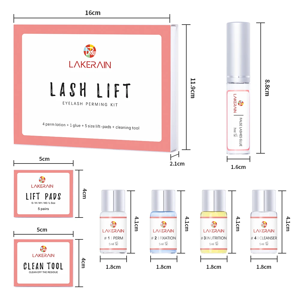 Package Include: Y-shape Perming Brushes x5 pieces Silicone eyelash pads: 5 pairs 5ml Cleanser agent x1 5ml Perming agent x1 5ml Fixation agent x1 5ml Nutrition agent x1 7ml Perming glue: x1Usage: Step1 : Using the 4# cleanser lotion to clean off the oil ,dust and make up residue on eyelashes. Step2 : Stick the silicone eye pads on the upper eyelids. Step3 : Apply the 5# gule on the eyelashes and silicone eye pads. Step4 : Brush eyelashes by 7# Y shape brush,then covering the cling film on eyelashes for 10 minutes. Step5 : Apply 1# perm lotions on eyelashes,covering the cling film on eyelashes for 10 minutes. Step6 : Apply 2# fixation lotions on eyelashes,covering the cling film on eyelashes for 10 minutes. Step7 : Remove cling film, using the 4# cleanser lotion to clean off all perm residue. Step8 : Finally, apply 3# nutritions lotions to repair the eyelash.