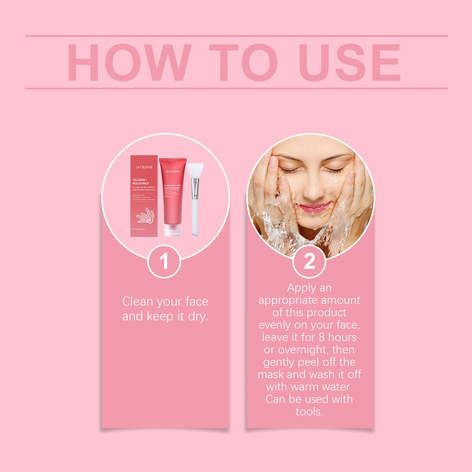 2. Apply an appropriate amount of this product evenly on your face leave it for 8 hours or overnight, then gently peel off the mask and wash it off with warm water.