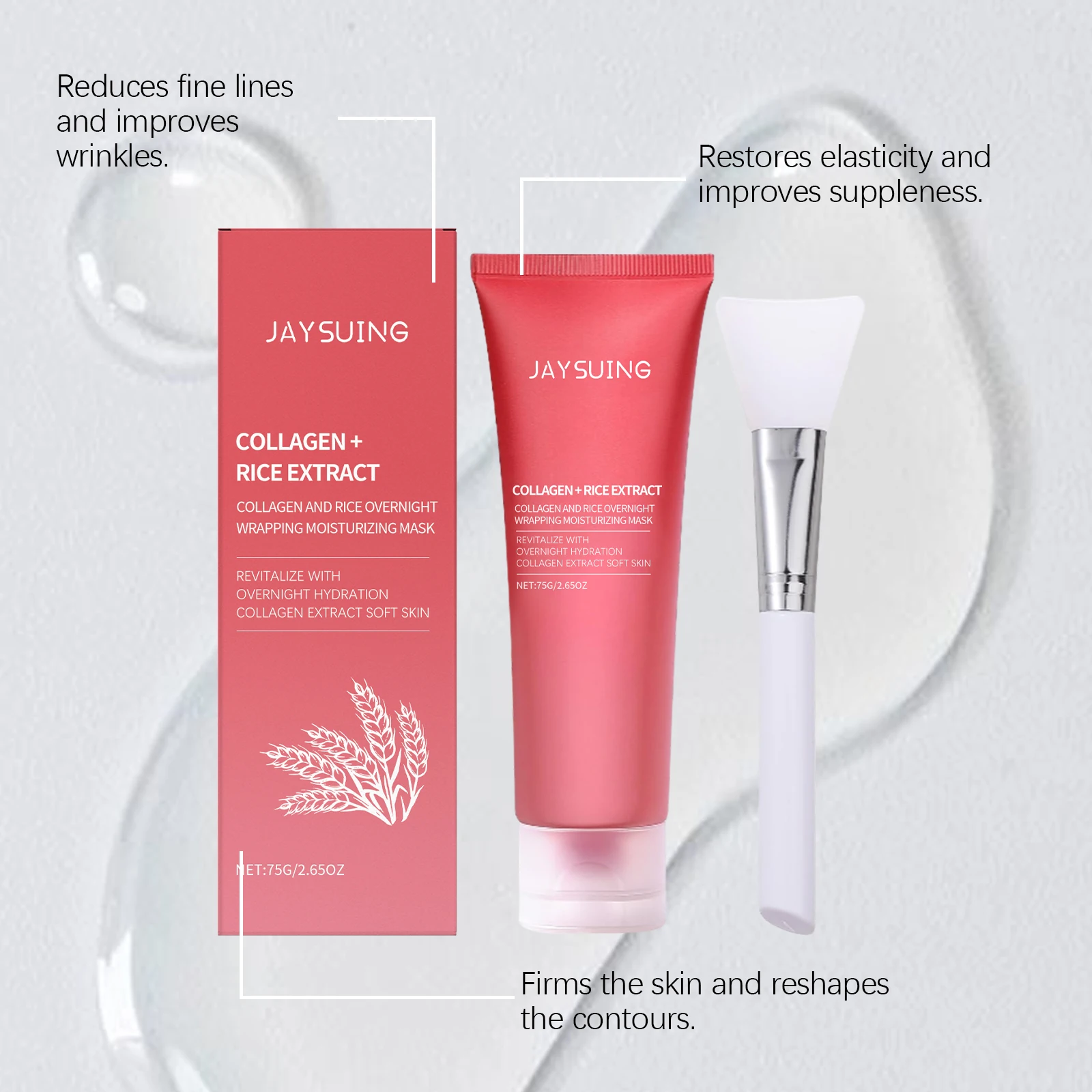Jaysuing Rice Moisturizing Mask Brighten Revitalize Skin Fade Fine Lines Wrinkles Restore Elasticity Reduce Dullness Peel-Off Facial Mask 75g